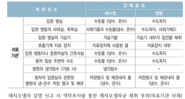 수계 배관 및 냉각탑의 레지오넬라 오염